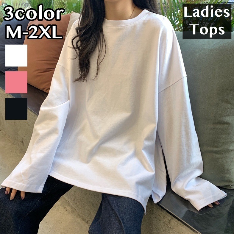 Tシャツ レディース トップス スウェット 長袖 ゆったり 大きいサイズ カジュアル ティーシャツ 4色 春秋服 Tシャツ カットソー