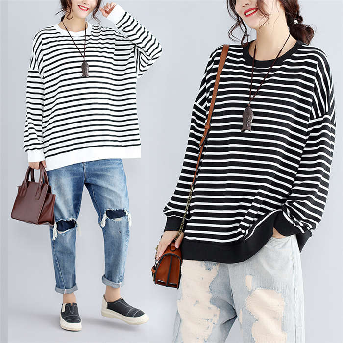 ボーダービッグプルオーバー スウェット プルオーバー レディース トップス カットソー 春 スウェット トレーナー ボーダー 丸首 長袖 パーカー 大きいサイズ ゆったり 綿混 コットン混 春秋 プル