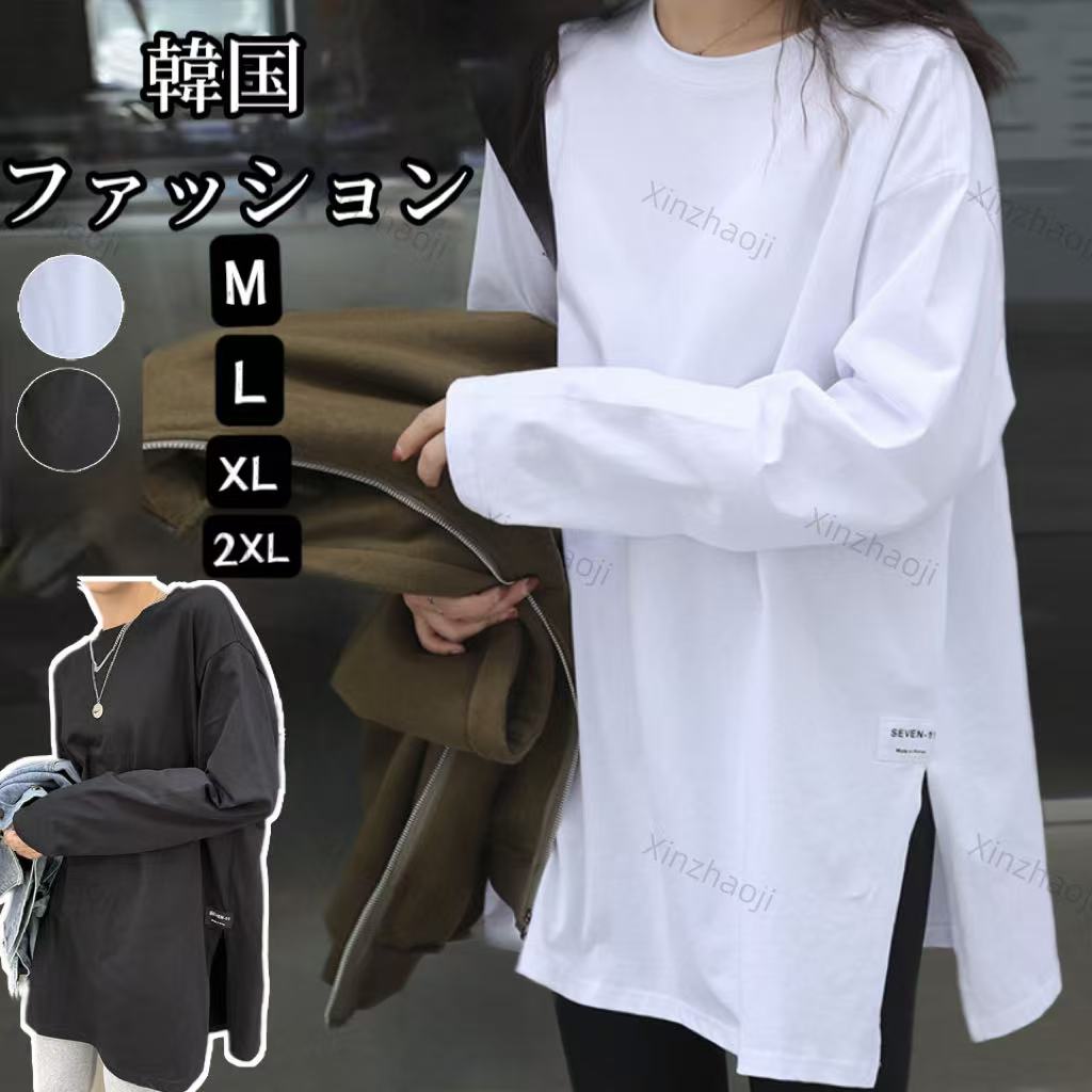 韓国超人気 ロングTシャツ春秋男女兼用トレーナーファッション メンズファッション韓国ファッション Tシャツ カットソー