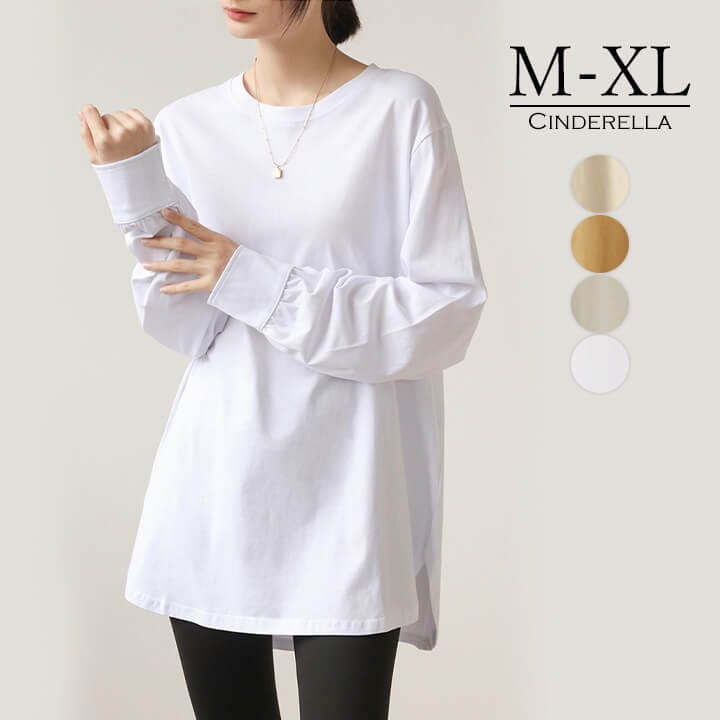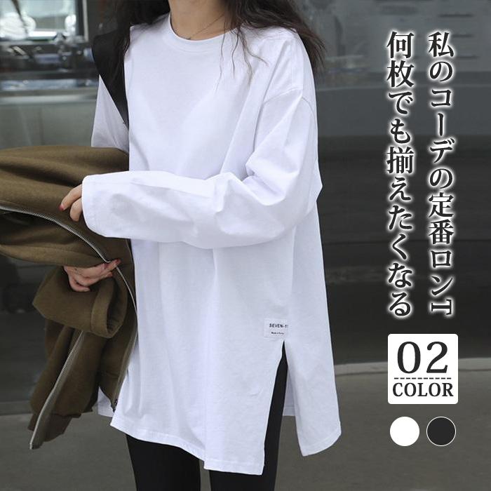 カットソー レディース ロンT トップス Tシャツ プルオーバー レイヤード 長袖 無地 カジュアル ゆったり サイドスリット 重ね着 Tシャツ カットソー
