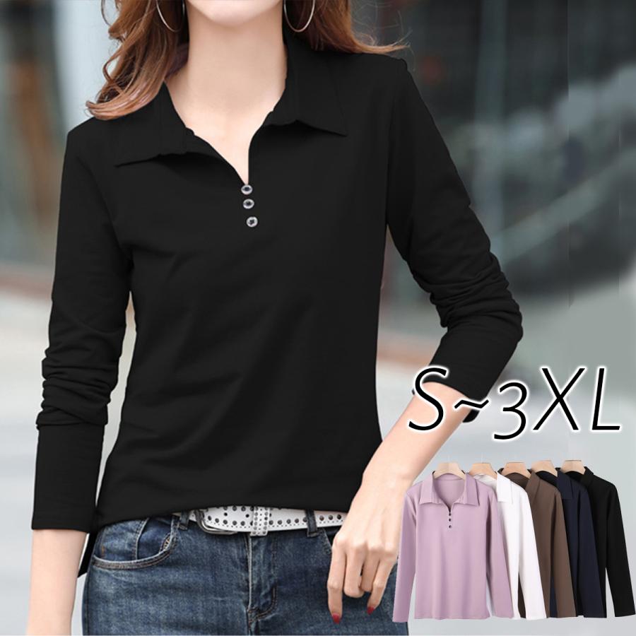 韓国風 軽熟気質 クール系 高級感トップス 秋のファッション 使いやすい スリム効果 お腹カバー 長袖シャツ ポロシャツ