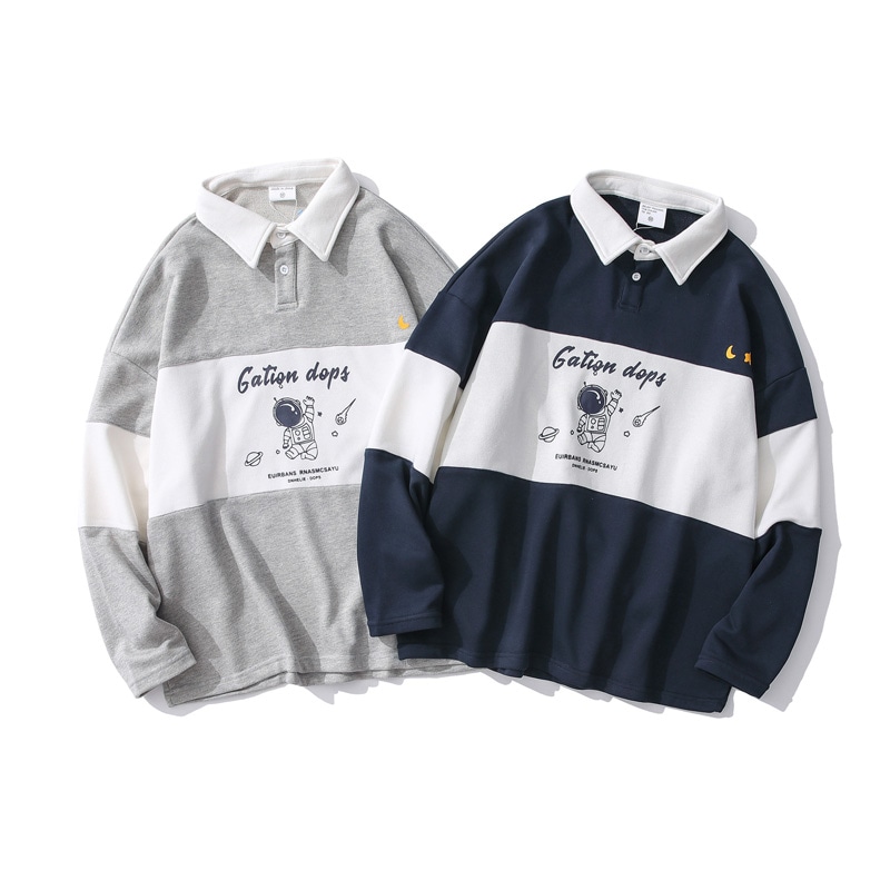 2色 宇宙飛行士 ポロシャツ 男女兼用 長袖 薄手 裏起毛 春秋冬 Tシャツ 学生 ゆったり ポロシャツ