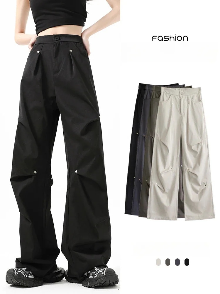 2025春新作 韓国ファッション ロングパンツ レディース カーゴパンツ パンツ ゆったり ワイドルーズズボンボトムス おしゃれ 体型カバー スウェットパンツ ワイドパンツ