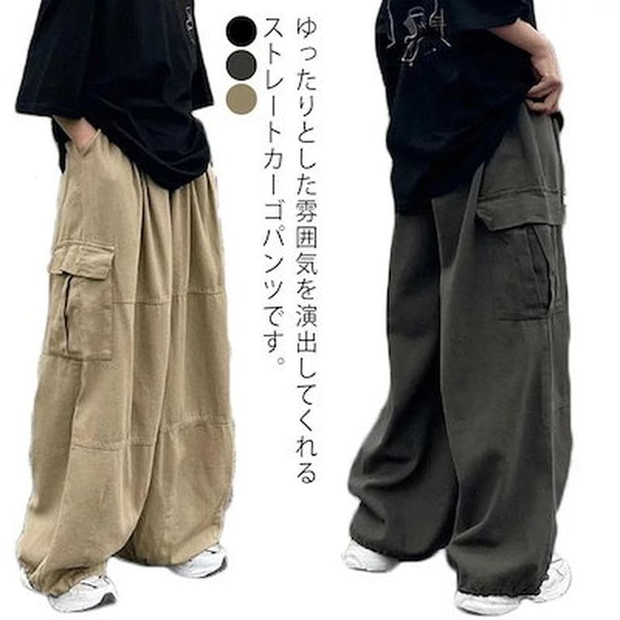 ワイドパンツ カーゴパンツ メンズ レディース ミリタリー 春 夏 秋 カーゴ コットン ガウチョパンツ 無地 ボトムス ポケット 長ズボン 大きいサイズ ウエストゴム 体型カバー 着回し アウトドア