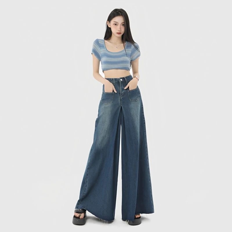 前後 両面 着用ジーンズ ジーンズ レディース デザイン パンツ 春と秋 ニセツーピース ワイドパンツ デニム ジーンズ