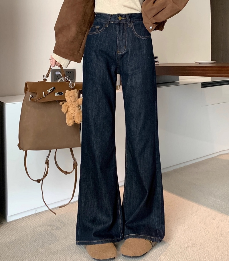 デニムパンツ ベルベットとろみジーンズ女性秋冬2024新入生ストレートゆったりワイドパンツ デニム ジーンズ