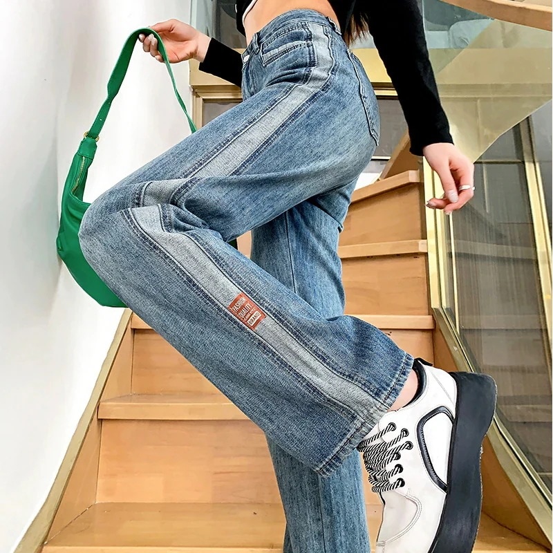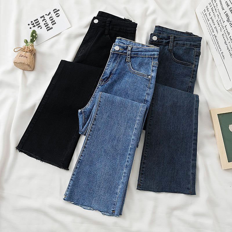 デニムワイドパンツ 秋新作 スモークグレー バンドジーンズ 着痩せ ins ゆとりがある ストレートワイドパンツ 韓国ファッション 百掛け やせて見える