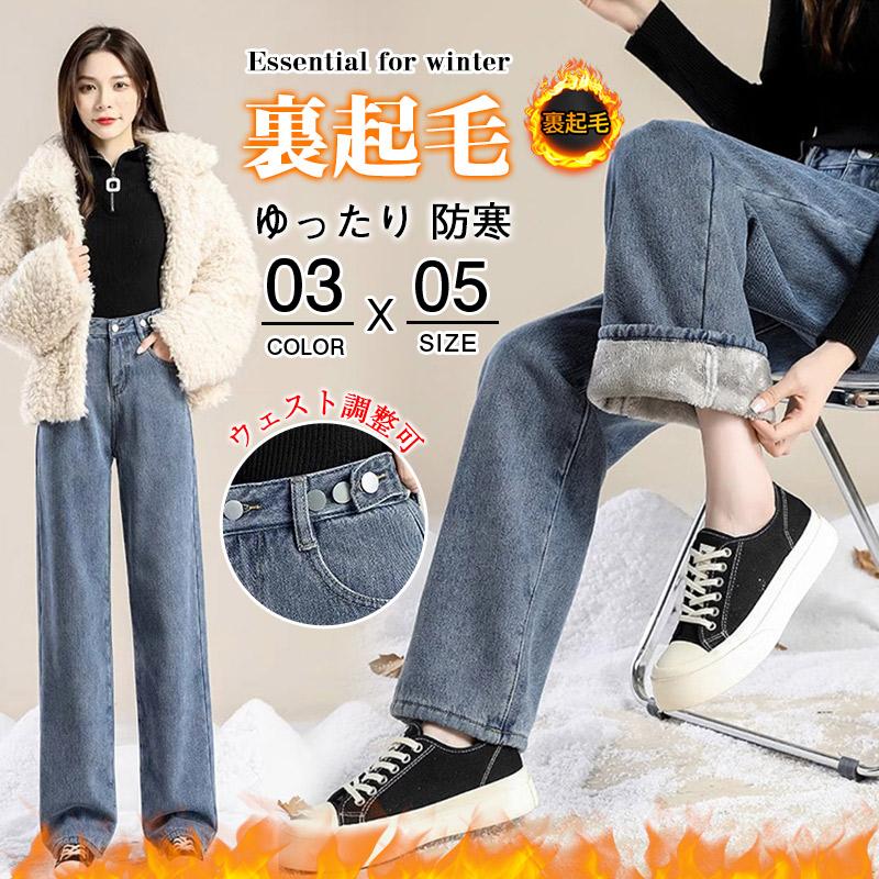 防寒 極暖裏フリース ワイドデニム 裏起毛ロングパンツ 防寒 超暖 ゆったり 通勤 ぽかぽかパンツ ぬくぬくパンツ脚長効果 レディース デニム ジーンズ
