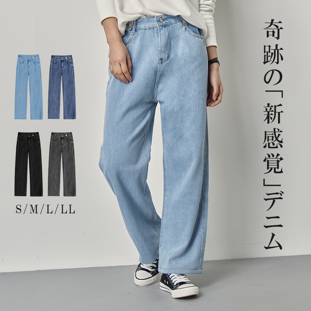 パンツ 夏 接触冷感 レディース ひんやり デニム 涼しい ワイドパンツ ボトムス ズボン ジーンズ 柔らか ストレートパンツ 大人 ゆったり ワイド 楽ちん リラックス シンプル カジュアル きれい
