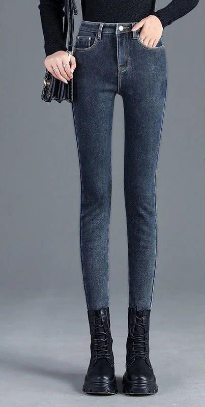 脚長効果 スキニーデニムパンツ 大きいサイズ ルーズウエストジーンズハイウエストストレッチスリムパンツペンシルパンツ レディース 韓国ファッション