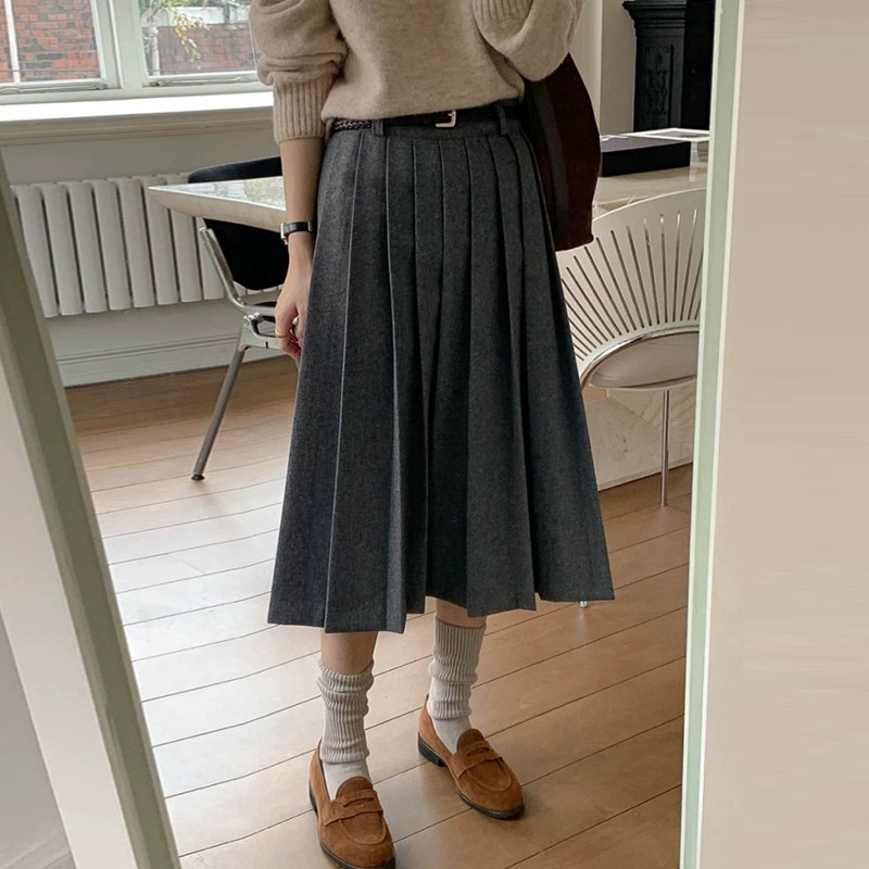 秋冬コーデウールプリーツスカートハイウエストロングスカートおしゃれ キュロットスカート