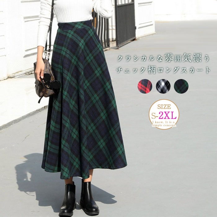 ロングスカート 秋冬 チェック柄 タイトスカート チェック柄スカート レディース スカート マキシ丈 40代 冬 Aラインスカート 50代 ウエストゴム 通勤 マキシスカート 30代 2024