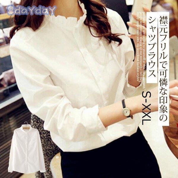 シャツ ブラウス レディース 長袖 ス 白シャツ 無地 ゆったり きれいめ 着痩せ 大人 おしゃれ 通勤 30代 40代 大きい 春 フォーマル コーデ フ