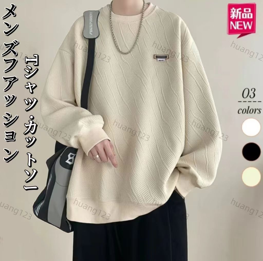 メンズファッション長袖Tシャツ カットソースタイリッシュで快適肌理感丸首パーカーメンズニットトップス 長袖シャツ