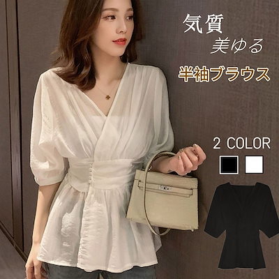 シアーシャツ シア一シャツブ ラウス カーディガンシフォンブラウス 夏 シフォンシャツ 半袖トップス Vネックウエスト引き締め 着痩せ ブラウス レディース 韓国ファッション 百掛け 半袖 tシャツ