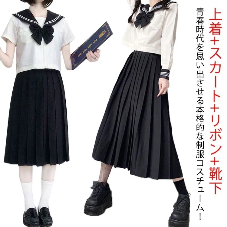 靴下付き セーラー服 衣装 4点セット レディース 制服 上下セット 半袖 仮装 学園祭 コスチューム 衣装 スカーフ ショートスカート セクシー セットアップ 学生服 長袖 女子制服 ミドルスカート