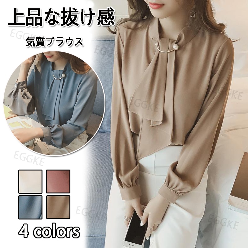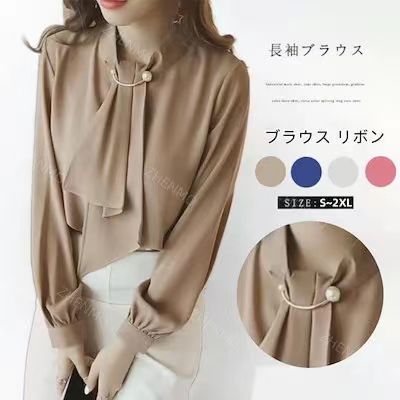 レディースブラウス長袖シャツオフィスガーリーリボン付きボウタイトップス シャツカジュアルゆったり春秋 体型カバーオフィスカジュアル シャツ ブラウス