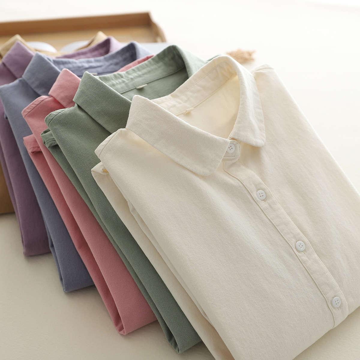 メーカー直販棉磨毛日系人形襟純色春秋長袖シャツ百合婦人シャツ シャツ ブラウス