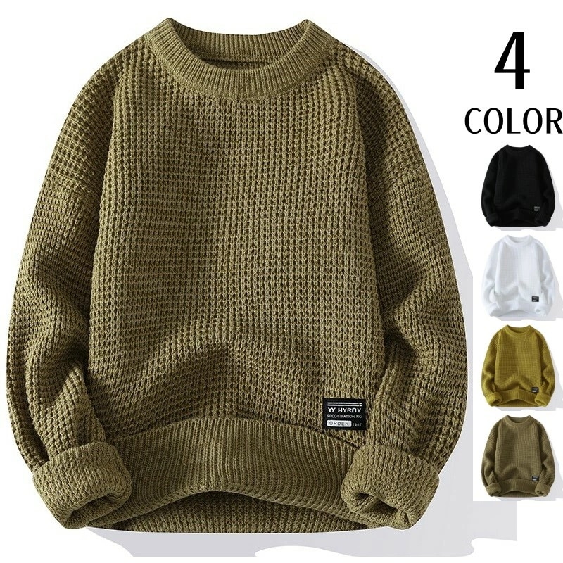 セーター 無地 長袖 冬服 トップス ニット 秋服 プルオーバー 暖かい カットソー 防寒 メンズ ニットセーター シンプル 重ね着風 カジュアル