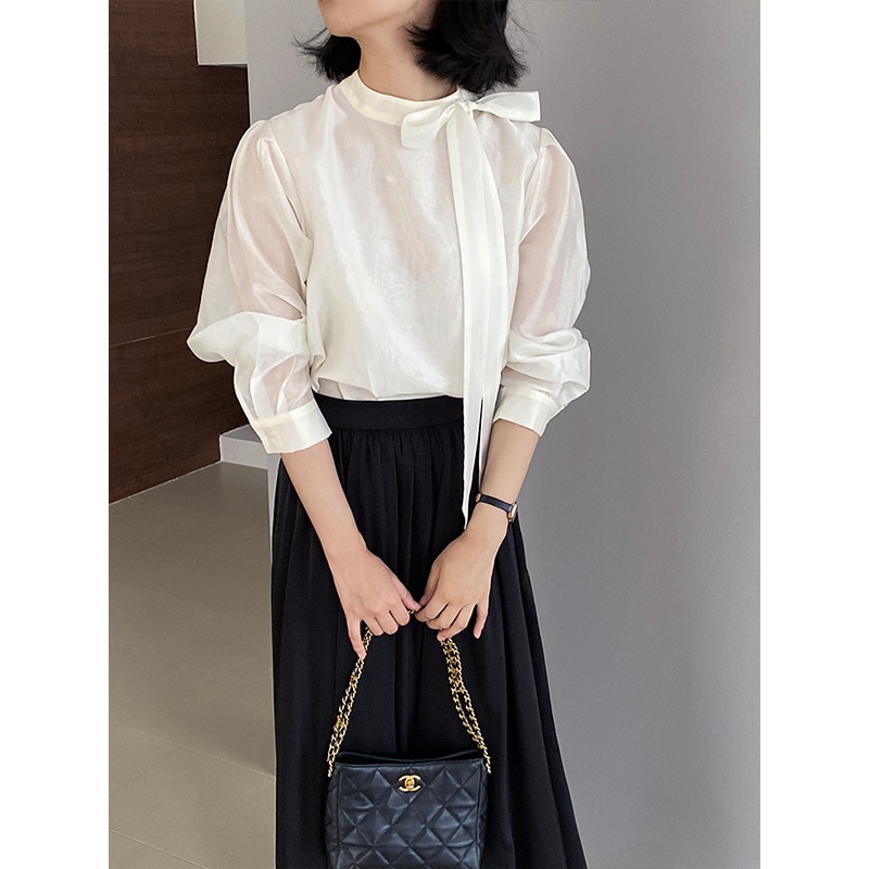 蝶ネクタイひらひらハーフハイカラー長袖シャツ女性秋新作通勤シャツ シャツ ブラウス