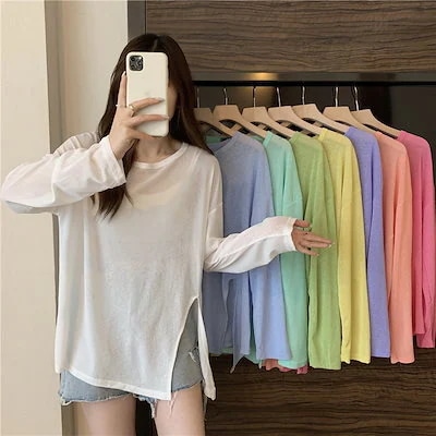 2025新作 韓国ファッション シンプル 轻薄 日焼け防止 UV 長袖 uvカット アームカバー シャツ ブラウス