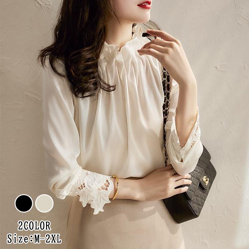 春先取りブラウス長袖ブラウス 韓国ファッションフリル裾 ブラウスシャツ百掛けブラウスレディース着痩せ tシャツ長袖シャツ Tシャツシアーシャツ