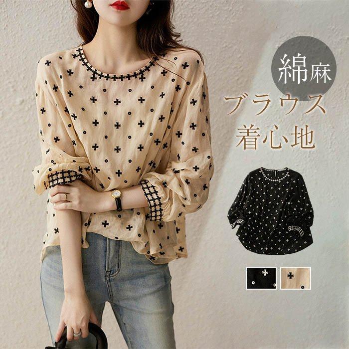 ブラウス レディース 長袖 秋 シャツブラウス トップス 刺繍 コットン ファッション 綿 七分袖 春夏 きれいめ フェミニン 大人 可愛い お洒落 通勤