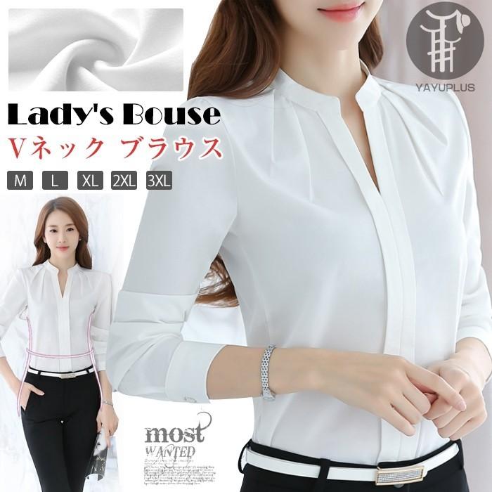 シャツ ブラウス レディース トップス 長袖 ビジネス オフィス Vネック フォーマル スーツインナー リクルート 就活 事務服 無地 シャツ ブラウス