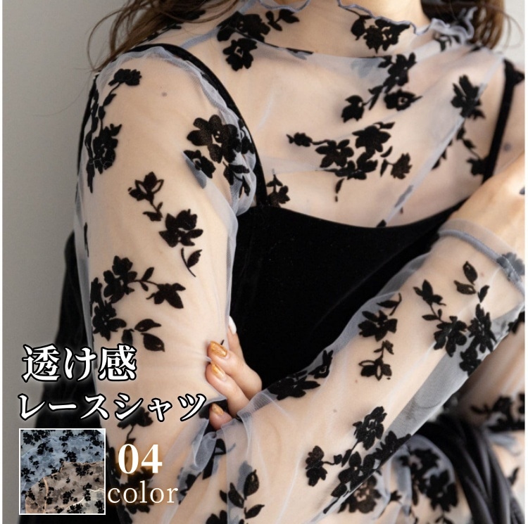 ブラウス 春人気 レトロ花柄 レース トップス セクシー透かし彫り 透け感 長袖ブラウス レディース 百掛け アンダーウェア着痩せシアーシャツ UVカット Tシャツ