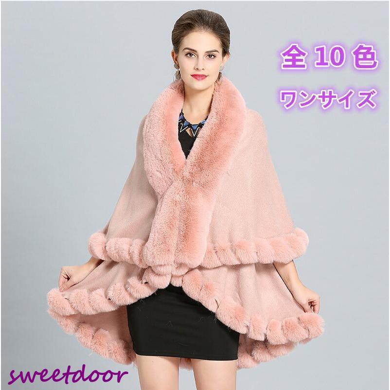 秋冬ファー付きケープコートゆったりフォックスフェイクファーポンチョ レディースマントコート 羽織アウター防寒コート大人あったか 女性ストールコート婦人服