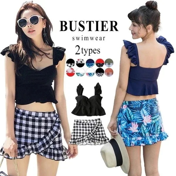 水着レディース 体型カバー 水着 ワンピース型 セパレート 肩出し 小胸バンドゥ 水着2点セット フリル 韓国風 20代 30代 40代 大きいサイズ 可愛い ウェア 温泉
