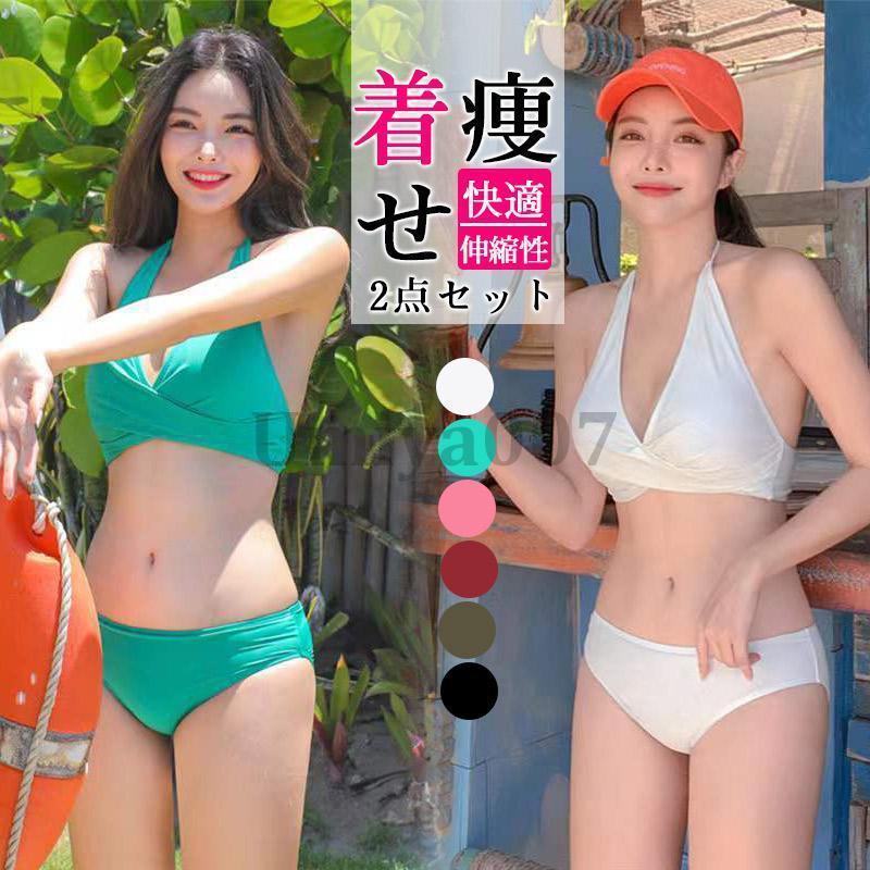 レディース 水着 体型カバー ビキニ 人気 フロントツイスト ホルターネック ビキニ セクシー おしゃれ 可愛い シンプル ぽっちゃり 小胸 カバー バスト 無地 20代 30代 40代 オトナ女子