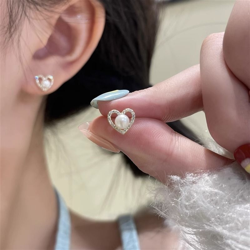 人気のピアス ハートパールピアス女2025年新作ハートピアス優しい雰囲気のハート型ピアス日常 イヤリング
