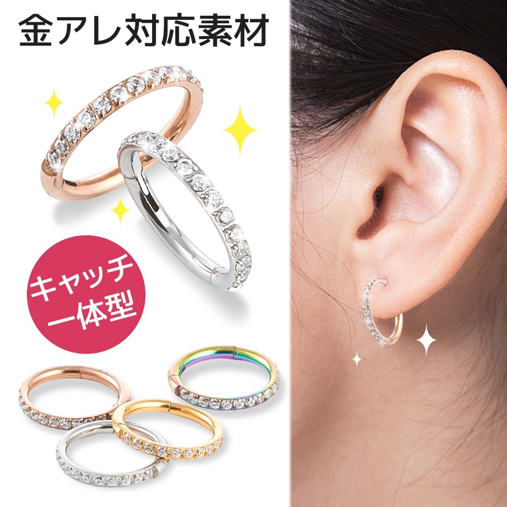 ボディピアス 軟骨ピアス リング フープ ピアス 金属アレルギー 16G サージカルステンレス キラキラ つけっぱなし フープピアス シンプル ワンタッチピアス セグメントリング リング