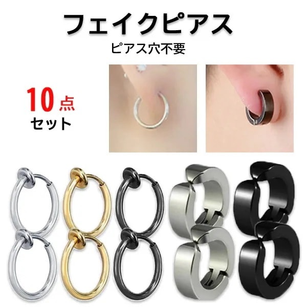 フェイクピアス 細い 太い メンズ レディース イヤーカフ フープピアス 小さめ フープイヤリング 穴あけ不要 イヤーカフピアス 軟骨 イヤリング