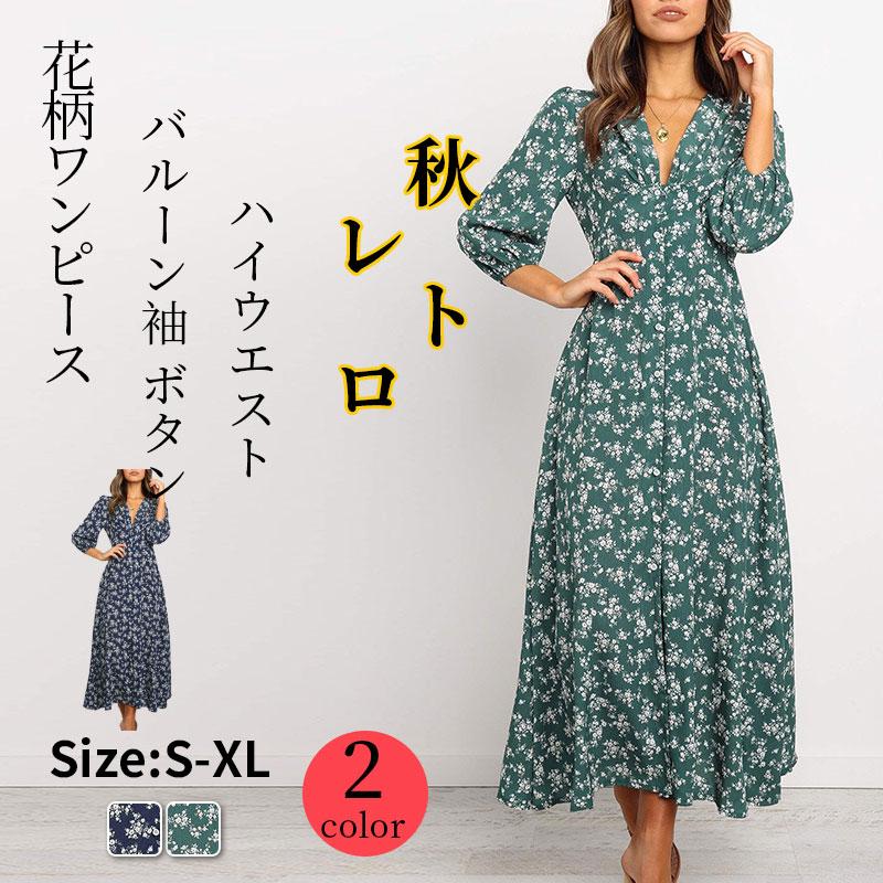 花柄ワンピース 長袖ワンピース レディース 春夏 ロングワンピース マキシ きれいめ 着痩せ おしゃれ結婚式 お出かけ 大人可愛い プリント 柄ワンピ