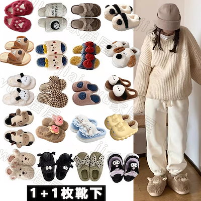 1+1枚靴下 SNS大人気拖鞋 もこもこスリッパ大集合ルームシューズ シンプルフワフワ 室内室外綿靴 滑り止め暖かいカップル