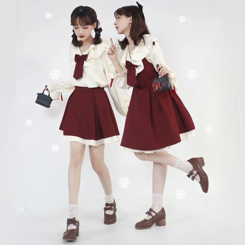 韓国 2023秋冬 カレッジ風 気質 JK制服 スーツ スカート クリスマス 外国風 ロリータ ワンピース 妖精 コスチューム