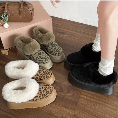 接触温感 ムートンブーツ 韓国人気 レディース モフモフ スリッポン 厚底 プラットフォームソー ムートンブーツ