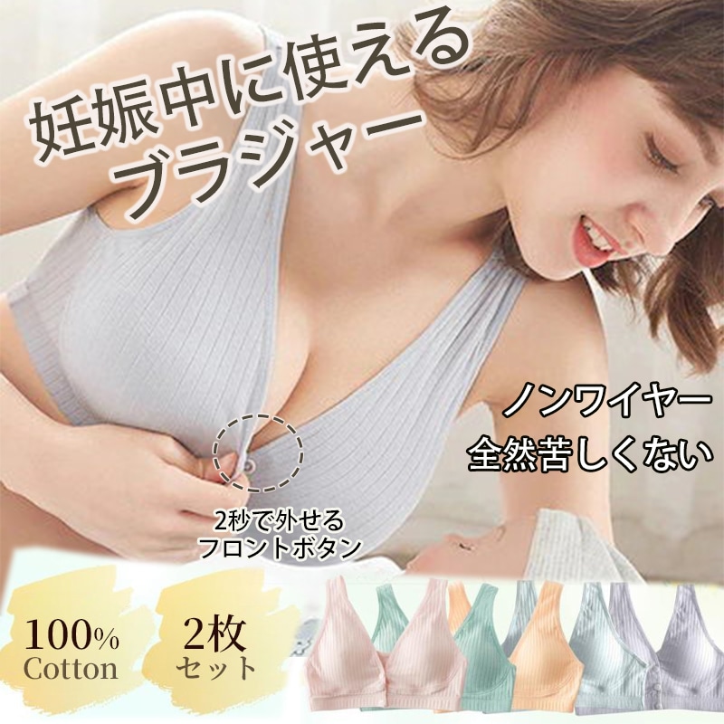 授乳ブラ 2枚セット マタニティブラ 前開き 大きいサイズ ノンワイヤー 垂れ防止 授乳 ブラ ブラジャー カップ入り コットン