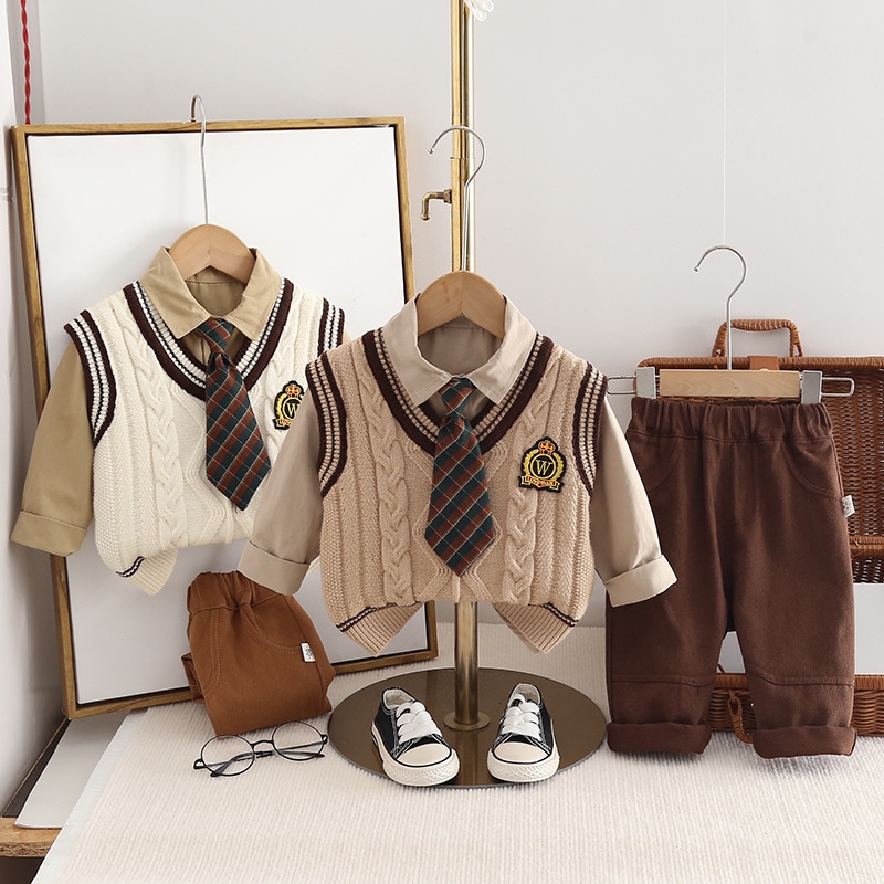 子供服日系春秋ニット長袖カジュアルTシャツ+ズボン2点セット 赤ちゃん上下セット ベビー用外出着 男の子 女の子 上下セット