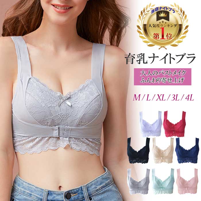 ナイトブラ ノンワイヤー 育乳 フロントホック カップ 全8色 M L LL 3L 4L 補正下着 育乳ナイトブラ ブラジャー 育乳ブラ 自胸 脇高