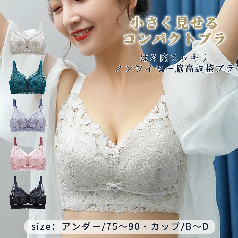 小さく見せるコンパクトブラ はみ肉スッキリ ノンワイヤー 脇高調整ブラ レース 胸を小さくする 着やせ 楽ブラ レディース ブラジャー 大きいサイズ さらしブラ 補正下着 脇肉誘導 脇高 通気性
