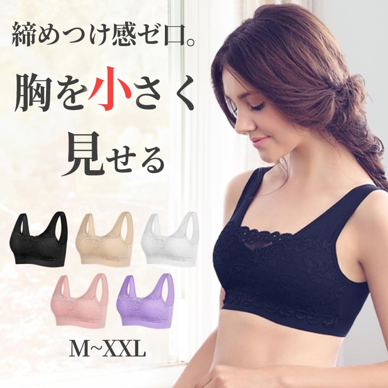 胸を小さく見せるブラ ノンワイヤー 大きいサイズ ブラジャー 胸が小さく見えるブラ 胸つぶし 30代 40代 50代 シームレス ナイトブラ