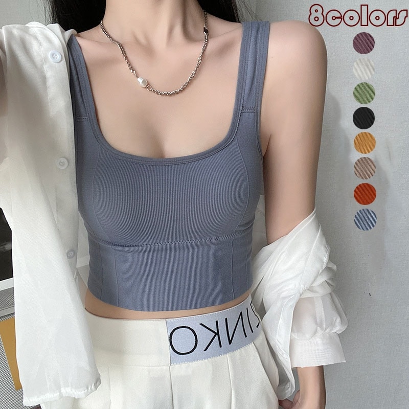 ブラジャー ブラ ノンワイヤー シームレス ブラトップ パッド付き スクエアネック リブ リブタンク タンクトップ 背中あき らくちん スポーツ ヨガ スポブラ 小胸 大きいサイズ シンプ