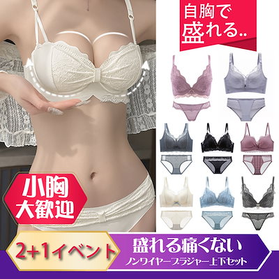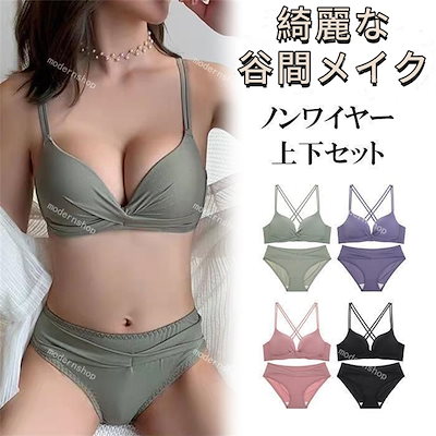 美胸盛れる 痛くないノンワイヤーブラジャー&ショーツ上下セット小胸大歓迎 ブラ&ショーツ上下セット