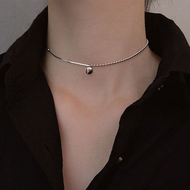 ネックレス 新作 丸い首輪 ロングネックレス レディー ins色落ちしないフレンチ 鎖骨チェーン シルバー セーターチェーン ネックレス
