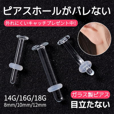 10本まで250運賃 透明ピアス片耳用 ガラスピアス 軟骨ニードルピアス18G 16G 14G