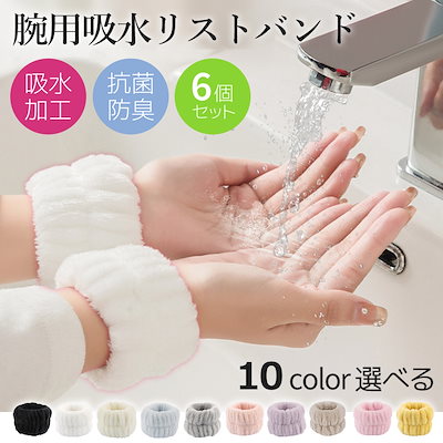 リストバンド 6個セット 手洗い 袖濡れ防止 服濡れ防止 吸水 シュシュ マイクロファイバー 吸水タオル 髪 お風呂上がり メイク 大人 子供 厚手 洗い替え 全10カラー