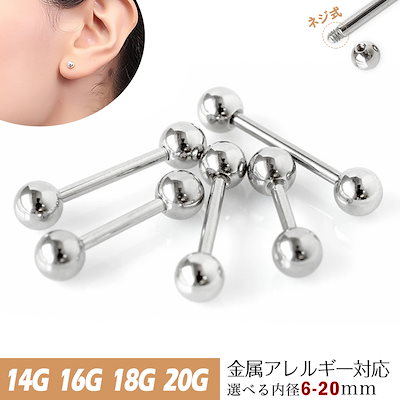 ボディピアス 軟骨ピアス 片耳用 14G 16G 18G 20G 舌ピアス ストレートバーベル ファーストピアス セカンドピアス 金属アレルギー対応 ネジ式 韓国ファッション